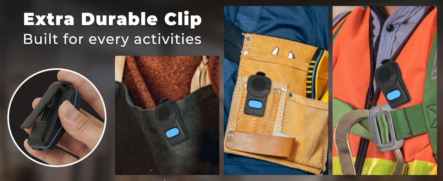 - [2 oz Lightweight ]: Weighing only 2 oz, our ultra compact wearable speaker features a durable clip for easy attachment anywhere. Its large multifunction buttons allow simple operation even while wearing gloves, making it perfect for jobsite